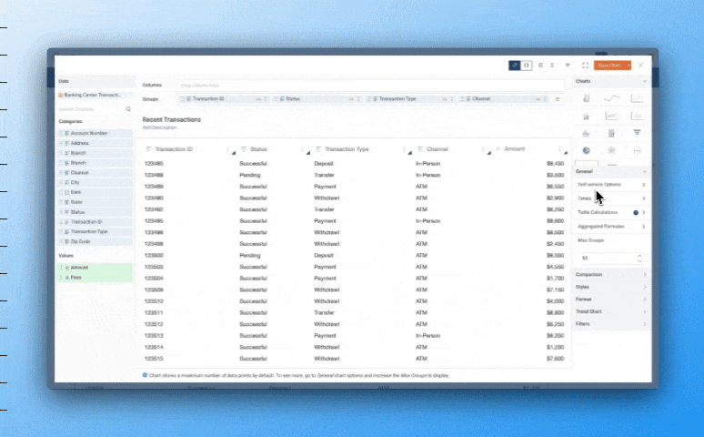 Empower end users to customize table chart configurations directly from the Dashboard View widget. You can now offer features like adding/removing columns, multi-column sorting, and moving columns. Check out our interactive demo on table charts for more.