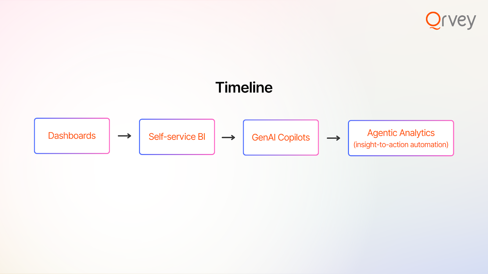 - It’s the next stage after dashboards, self-serve BI, and GenAI copilots—from passive reports to proactive, workflow-integrated decisions.