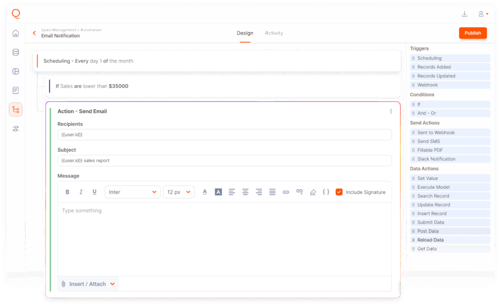 Qrvey has a built-in data lake, so you don’t need complex ETL. It handles data flow and real-time queries in one place.