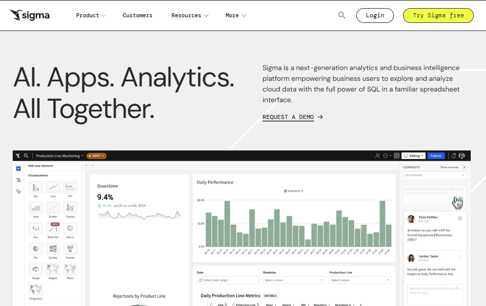 Sigma | Best for companies leveraging a spreadsheet-style interface for cloud data analysis, especially with Snowflake integration. |
