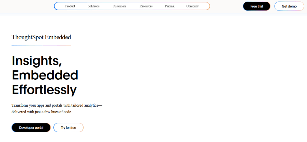 ThoughtSpot Embedded | Best for search-driven analytics and AI-powered anomaly detection for large datasets. |