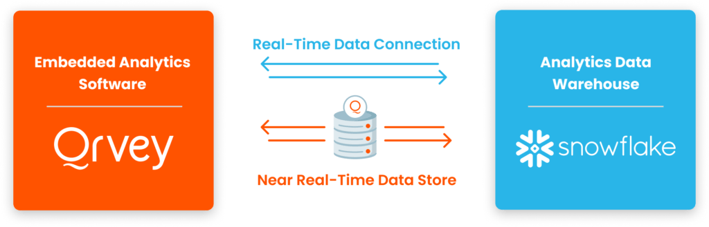 Snowflake (in this example) will remain as your primary source of record for all data, but Qrvey can be used as a processing layer. You can sync data to Qrvey on a schedule based on reporting needs.