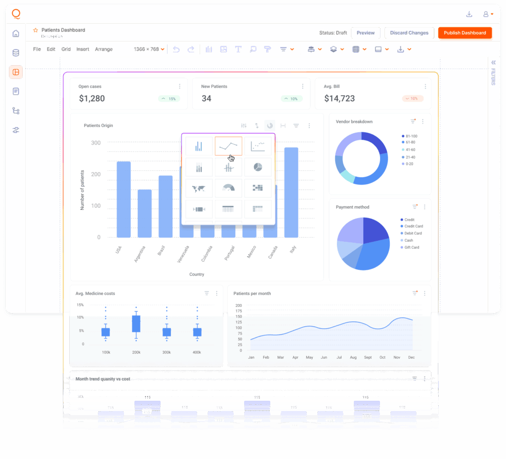 Qrvey’s unique approach offers a full-stack solution with all the embedded visualization and self-service analytics tools to personalize analytics experiences. The powerful user-facing tools are backed by a data layer that includes a unified data pipeline with a scalable data lake optimized for multi-tenant analytics.