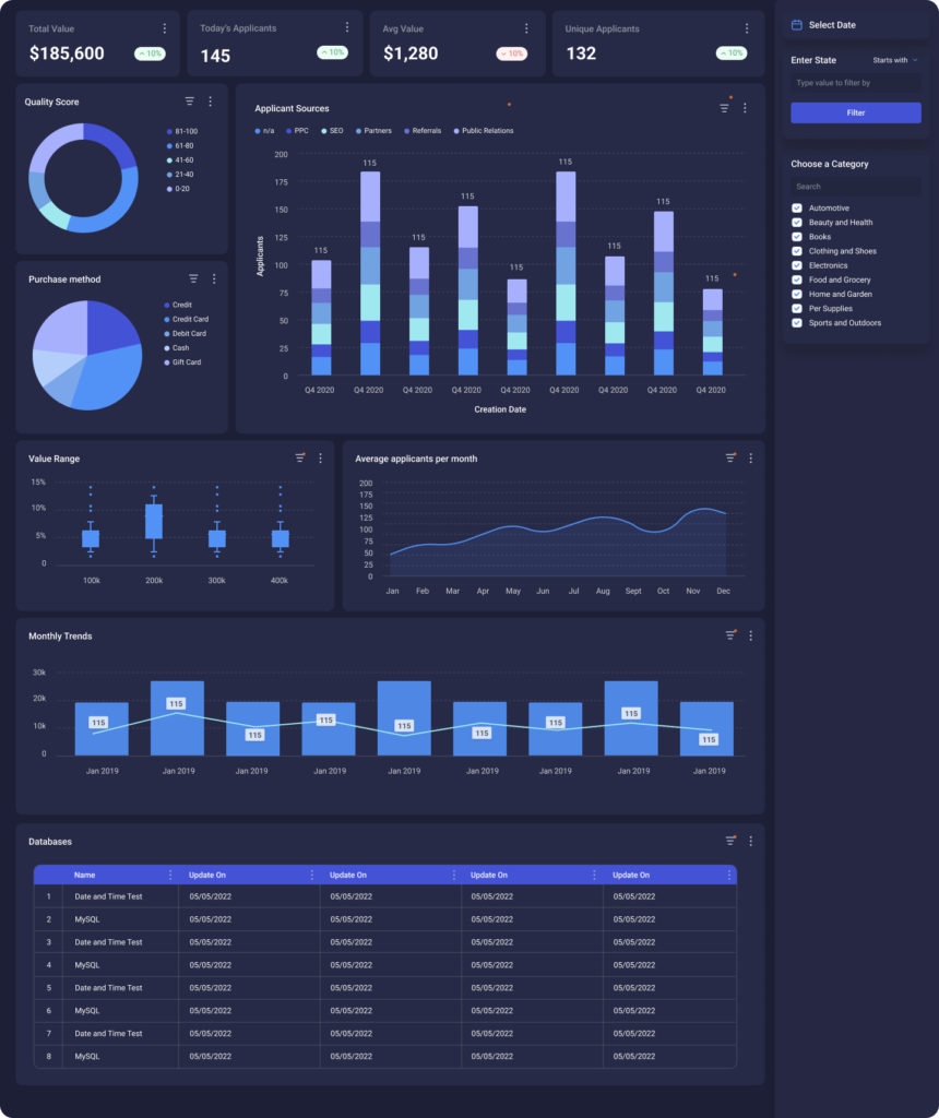 - Filters: let users slice by date, category, segment, or any relevant dimension