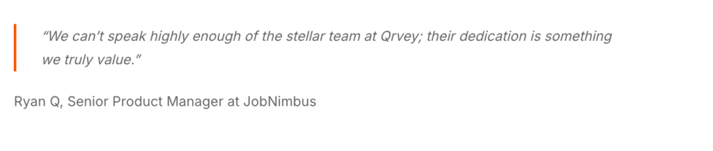 JobNimbus embedded Qrvey’s self-service, drag-and-drop dashboard builder, giving non-technical contractors the ability to build their own custom reports. Within months, they saw 70% adoption among large enterprise users and a meaningful increase in product-market fit.