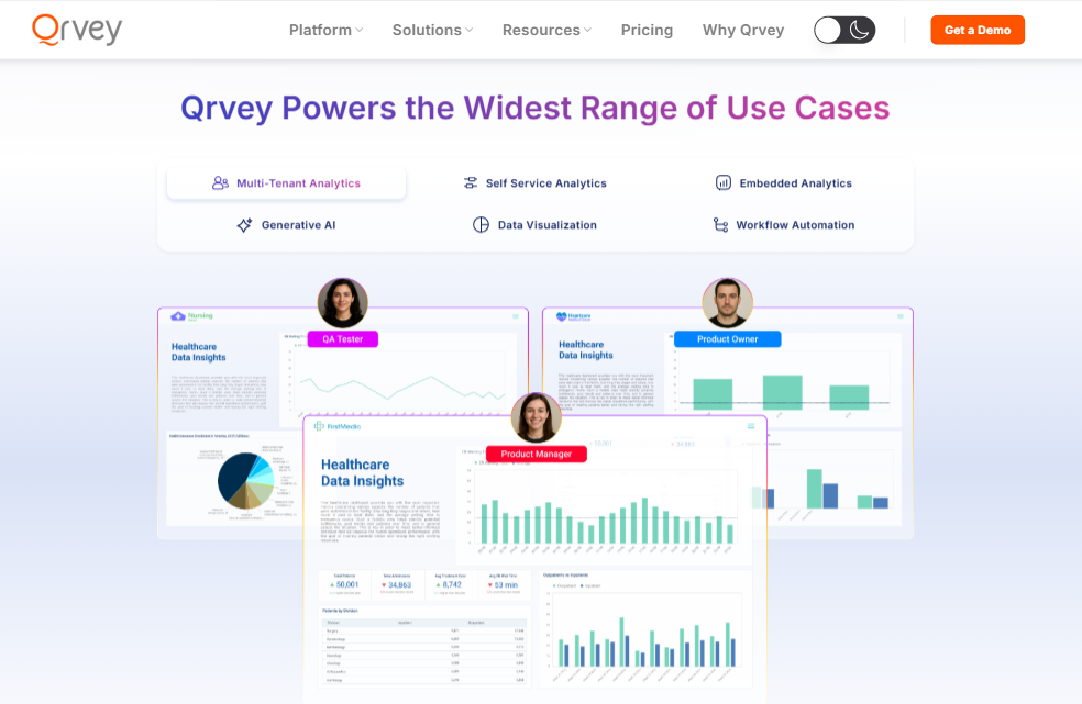 Companies like Qrvey provide embedded analytics for SaaS applications with pre-built charts and self-service dashboards, transforming analytics into a competitive advantage without consuming your roadmap.