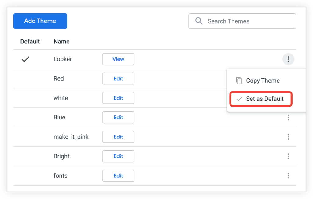 - Apply custom themes: In Looker, go to Admin > Platform > Themes to create your own theme, including colors, fonts, and UI styling.