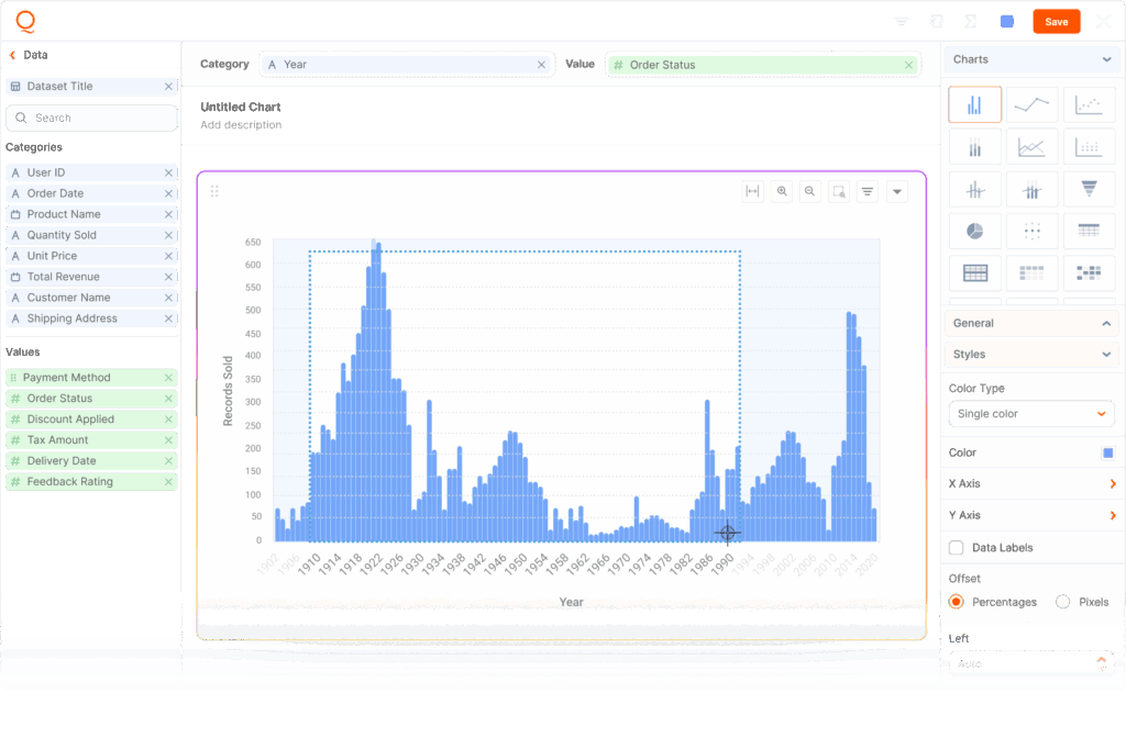 The customer who runs a mid-size retail chain can drag in sales data, filter by location, add a time comparison, and spot trends, all without submitting a single support ticket. Their marketing director can segment customers, track campaign performance, and pivot the data however they need.