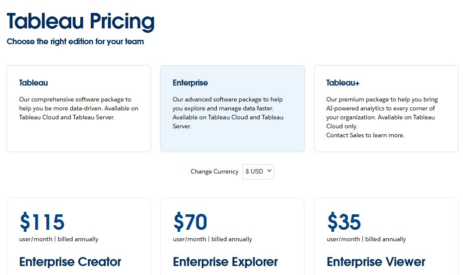 - Creator licenses: $70 per user/month for dashboard builders. Enterprise creators pay up to $115 monthly.