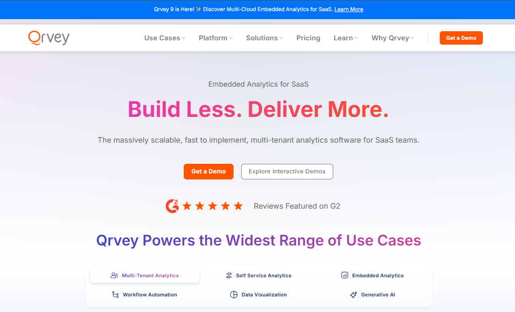 Qrvey takes a different approach, with a solution built specifically for SaaS companies that need to embed analytics without the technical debt that comes with adapting traditional BI tools.