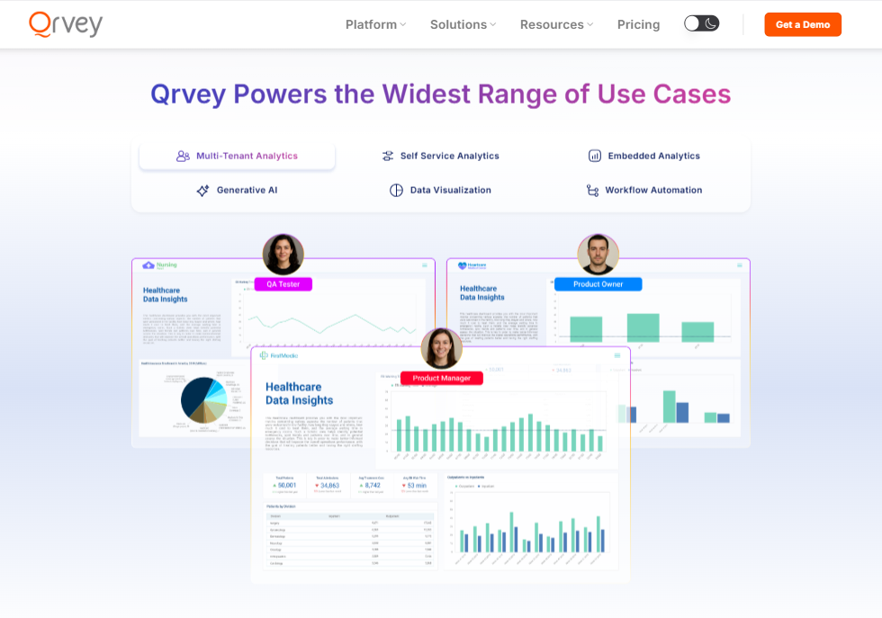 Qrvey specializes in embedded analytics for SaaS companies that want to offer sophisticated data capabilities without building analytics infrastructure internally.