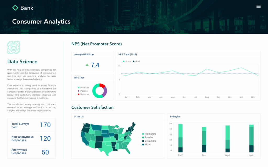 Download ReportQrvey enables a wide range of financial analytics use cases while prioritizing data security. Our software embeds interactive analytics directly into financial data analytics platforms. This integrated approach accelerates time-to-value since teams can immediately access analytics within familiar systems.